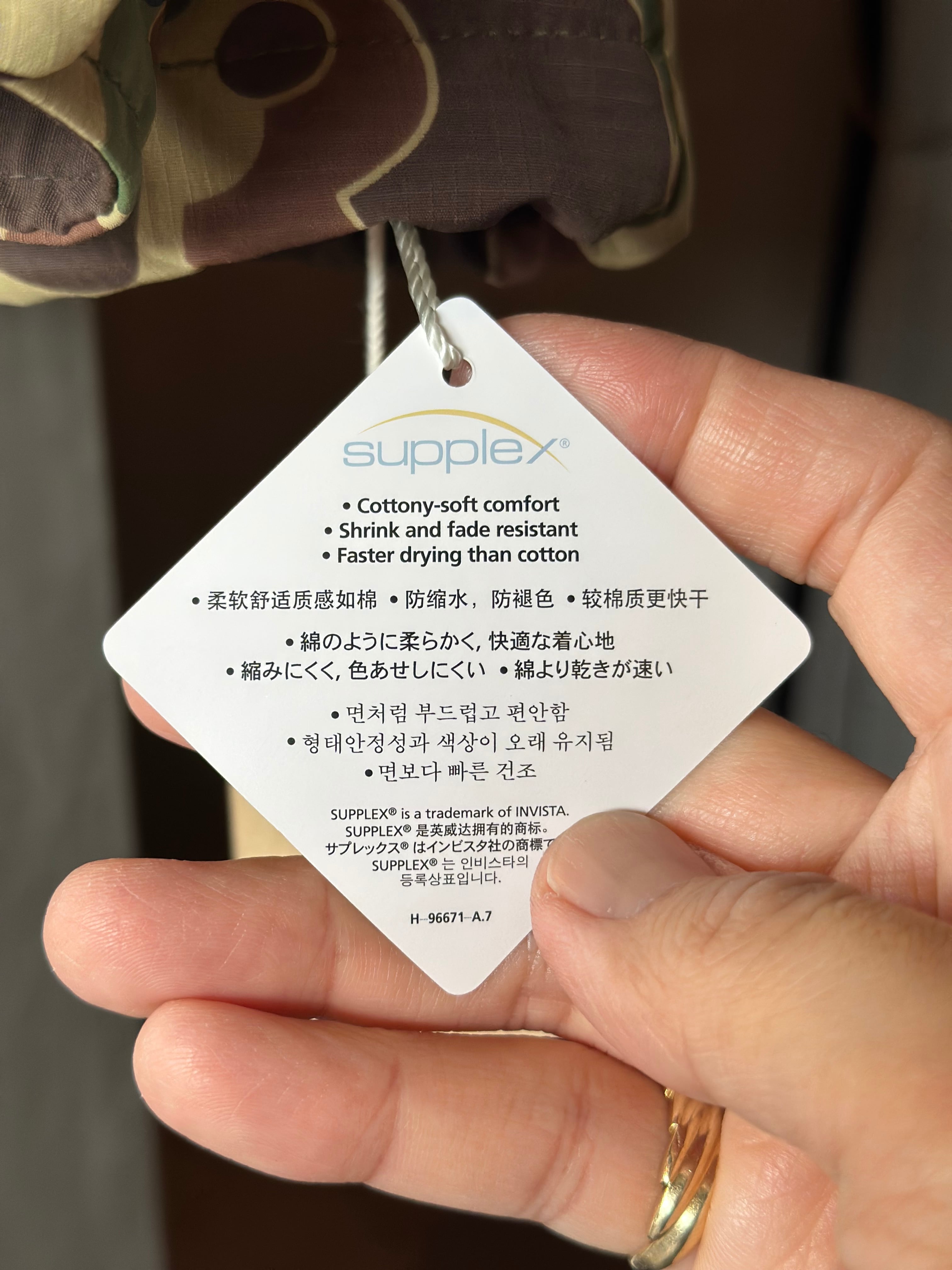 コットンライクな表情が特徴的ですが、速乾性、通気性を兼ね備えており、形状保持力が高く退色しにくいという素材