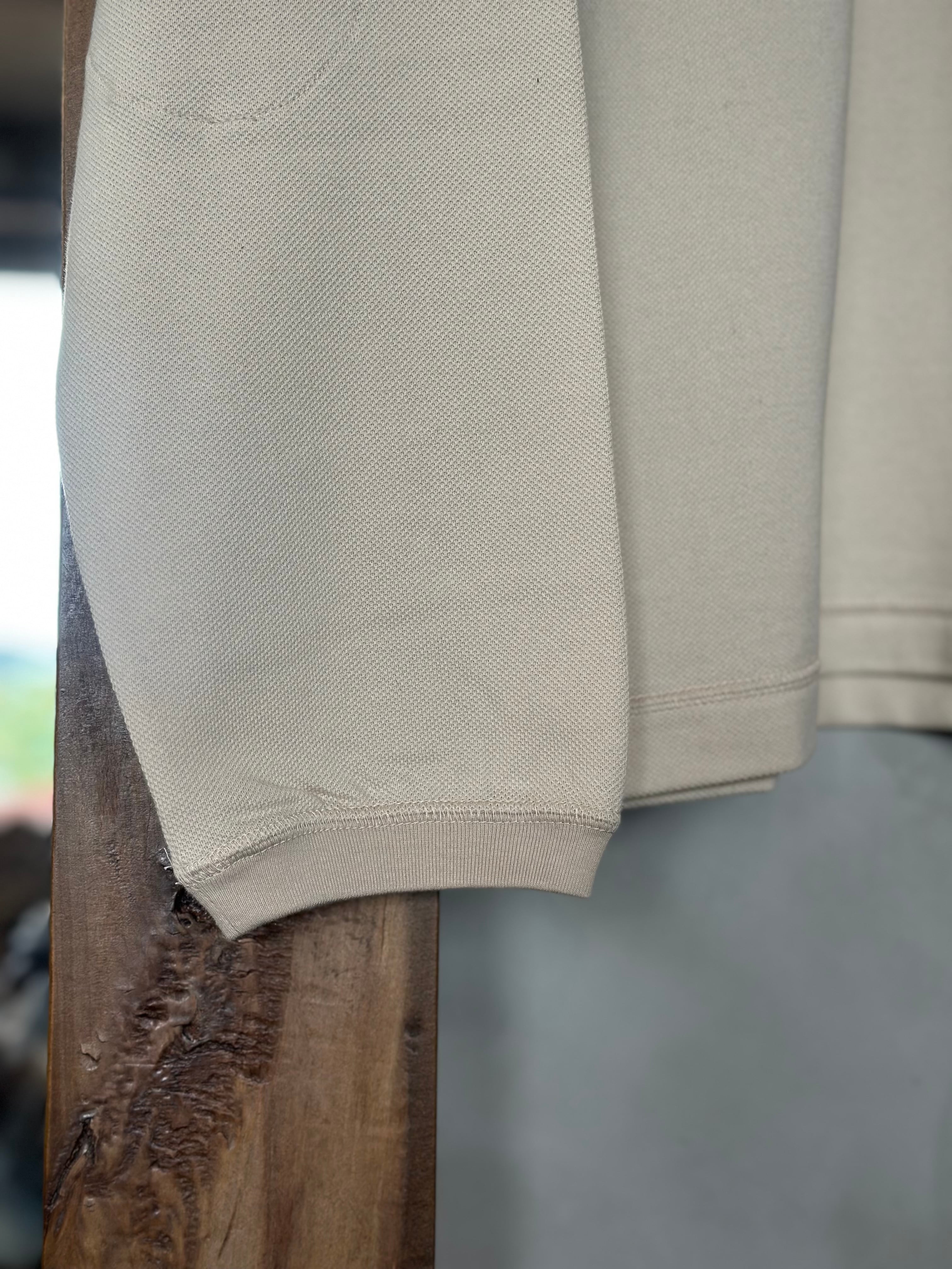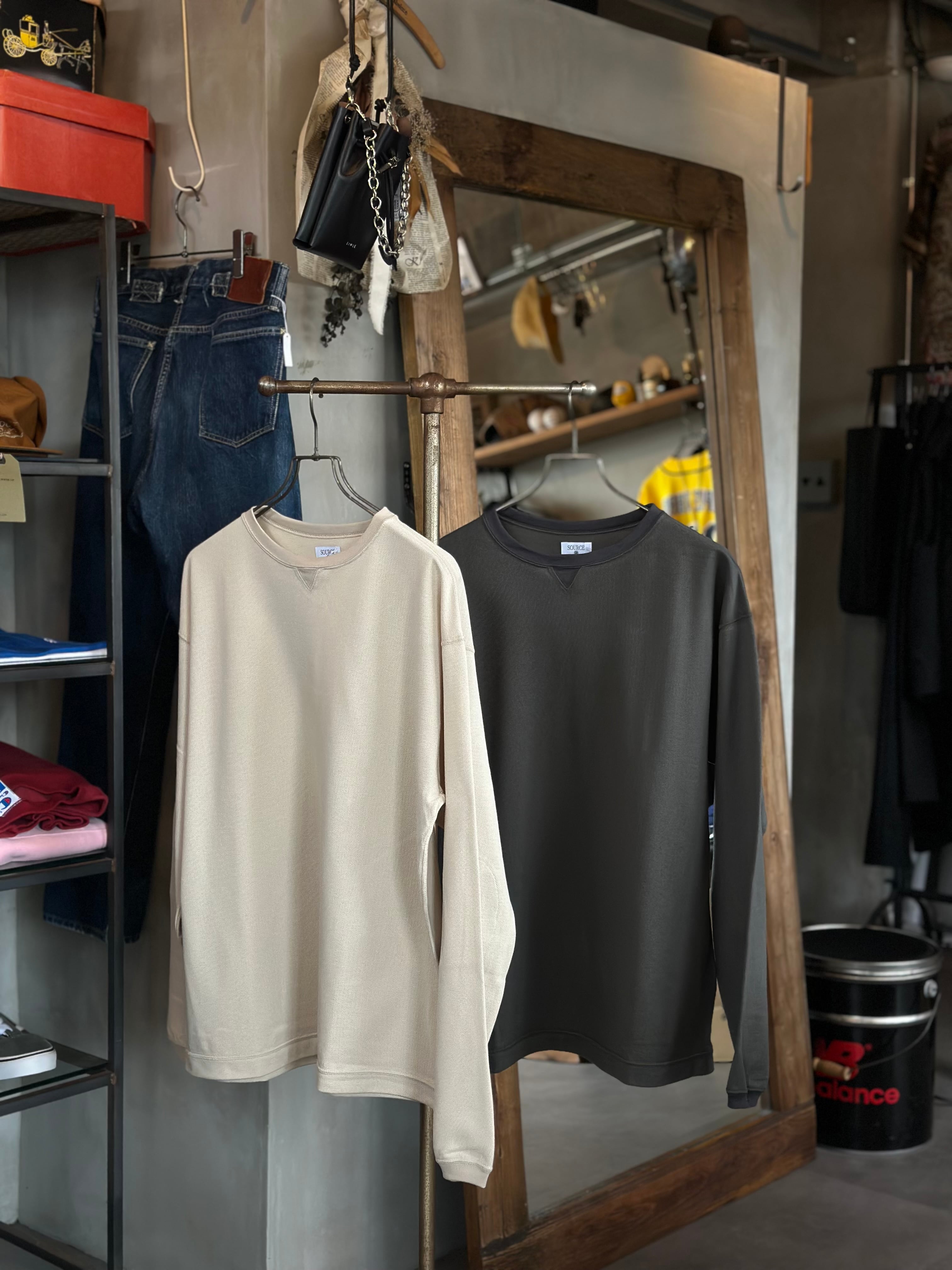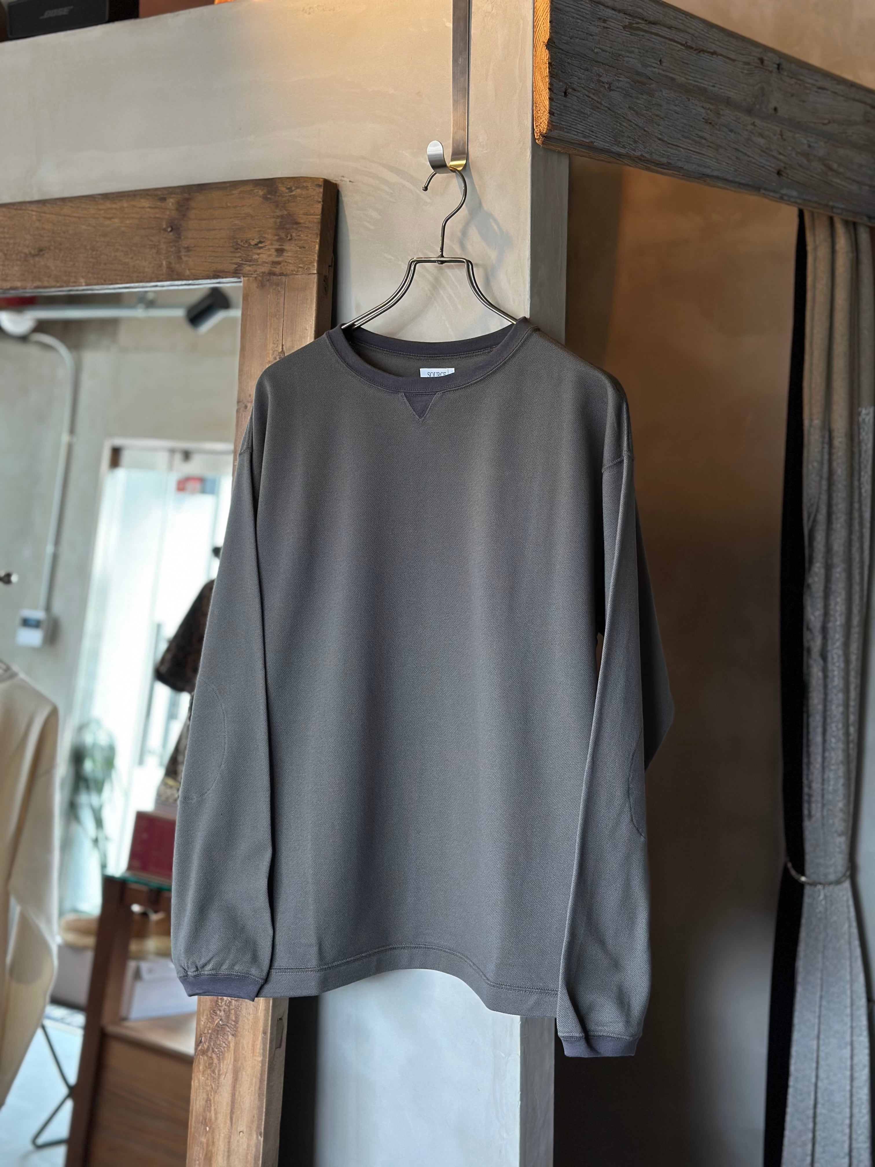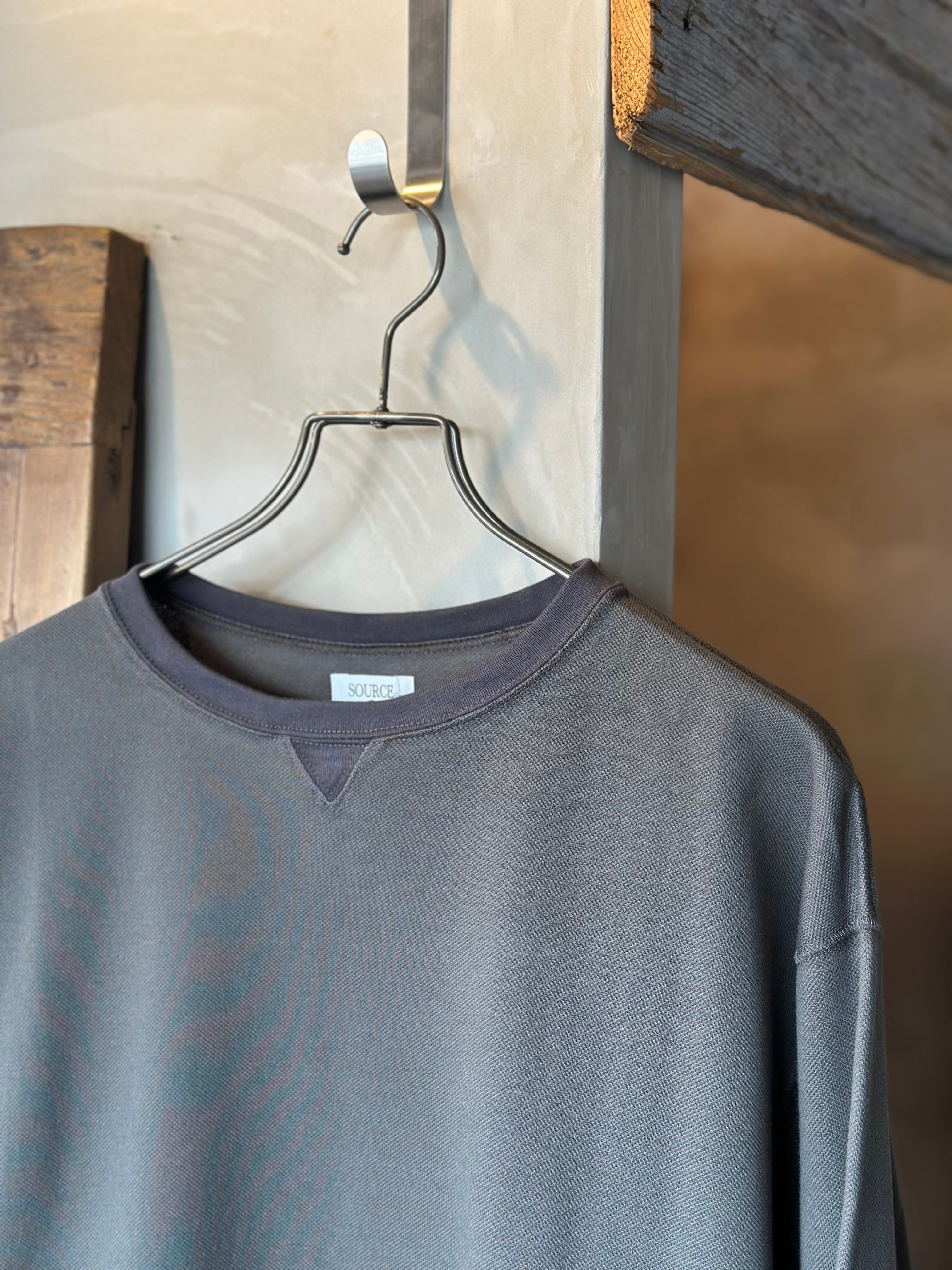 首元、V部ガゼット、袖先のリブは鹿子のボディーよりも少しカラートーンを変え、同系色でありながら2トーンになっており、見た目にメリハリを効かせました